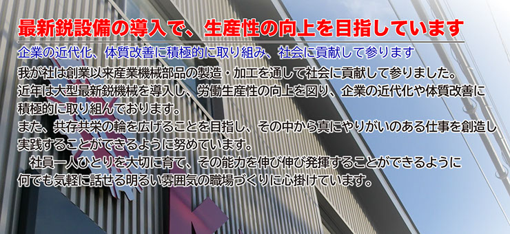 企業の近代化、体質改善に積極的に取り組み、柔軟な姿勢で社会に貢献して参ります。